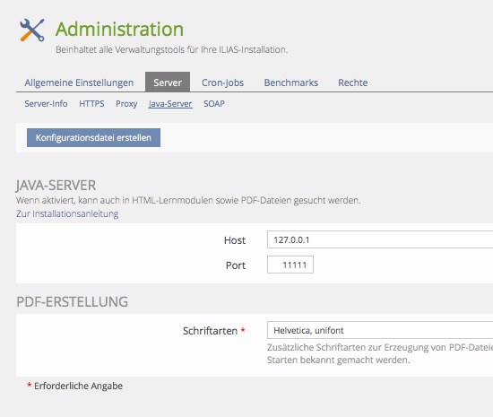 Unter den Java-Komponenten verstehe ich den Lucene-RPC-Server, den man u.a. für die geniale Volltextsuche benötigt und den Chatserver. Der Chatserver wird übrigens ab ILIAS 5.2 nicht mehr mit Java laufen.