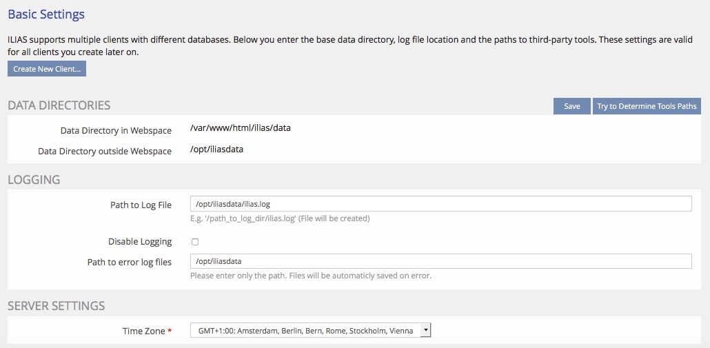 • mkdir /var/www/html/ilias/Customizing/clients