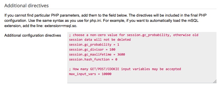 • Additional PHP settings could be: