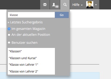 Im Schulclient kann man dann Lucene testen (Eingabe des Suchwortes "Klasse"):