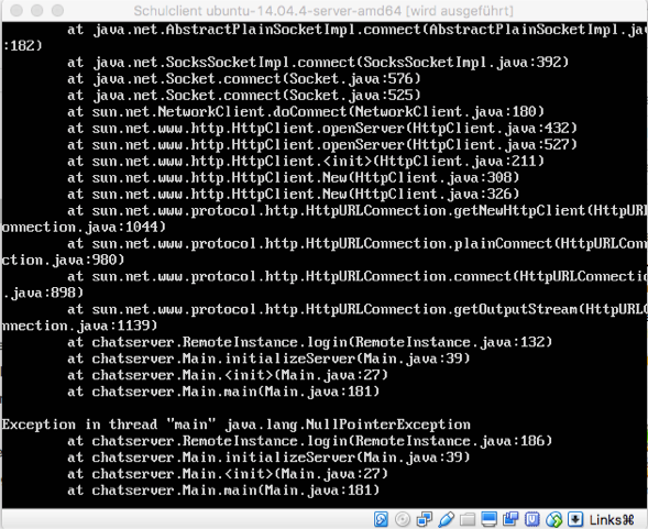 Hinweis: Der Chatserver gibt seinen Output auf die Konsole aus. Das ist ein Schönheitsfehler, mit dem wir leben können.