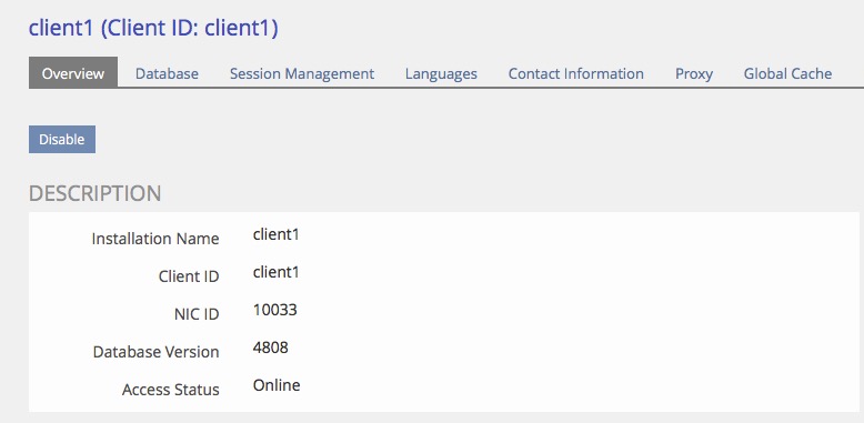Der obige Code ist von einem Blogeintrag von mir kopiert und muss angepasst werden. Wir benötigen die beiden Client-IDs und die zugehörigen NIC-IDs, welche wir im ILIAS-Setup Details->Overview erhalten. Ebenso muss der ILIAS-INI-Pfad angepasst werden, da unser ILIAS-Verzeichnis sich nicht in /var/www/info sondern in /var/www/html/ilias befindet. Unten können wir die Daten ablesen: